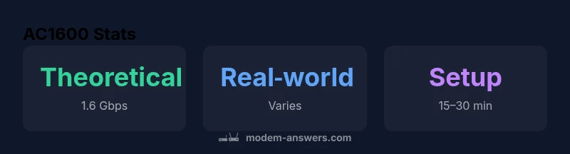 An AC1600 WiFi cable modem router is a single device that combines a DOCSIS modem with a dual‑band wireless router, designed for cable internet. The AC1600 label refers to the practical range of wireless throughput achievable in ideal conditions, typically under 1600 Mbps total across 2.4 GHz and 5 GHz bands when using modern 802.11ac (Wi‑Fi 5) technology. In real homes, actual speeds depend on service plan, interior layout, and interference. According to Modem Answers, this class is popular with households who want a simplified setup and fewer devices. It can help minimize wiring clutter and reduce the number of power outlets required. Importantly, if your plan exceeds the device's capacity, you won't see faster speeds—the bottleneck remains the ISP plan and network conditions. We'll unpack how this device behaves in typical scenarios and what trade-offs to expect.