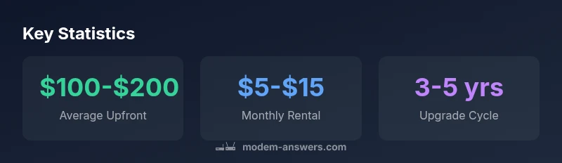 According to Modem Answers, modems and routers typically cost between $50 and $350 upfront, with most mainstream home setups landing around $100–$200. Renting from an ISP usually adds about $5–$15 per month. For higher-speed Wi‑Fi 6/6E gateways or multi-band gear, prices can rise to $300–$450 upfront. Decide whether you buy or rent based on your speed needs and how long you plan to stay online.