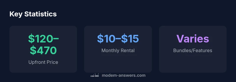 Typical upfront price for a modem-router combo ranges from about $120 to $470 if you buy it outright. Rental through a provider often runs roughly $10 to $15 per month, with higher-end models or bundles costing more. If you value built-in phone lines, security features, or multi-gigabit Wi-Fi, expect prices toward the higher end.