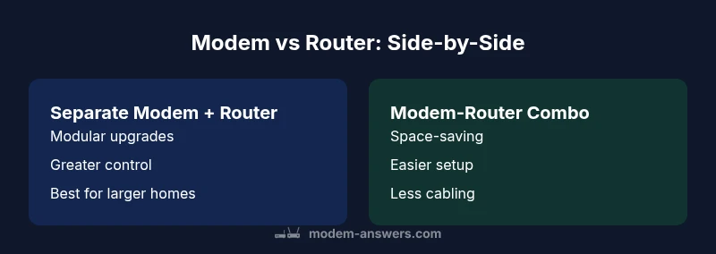 A practical, objective comparison of modem vs router, detailing separate devices vs combined modem-router setups, with setup tips, performance considerations, and buying guidance for 2026.