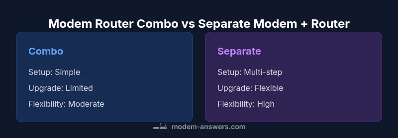 Is a modem router combo better? This question comes up frequently among homeowners and renters who want a reliable, simple-to-manage network. According to Modem Answers, most households value ease of use and predictable performance over the ability to customize every setting. A combo device offers an all-in-one solution with fewer cables, less clutter, and often a single point of contact for support. Yet, it can constrain future upgrades and limit advanced configurations, which matters for power users, gamers, or homes with many smart devices. This article provides an objective, data-informed comparison to help you decide based on your space, usage, and ISP constraints.