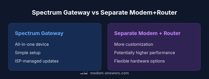 Choose the Spectrum gateway if you want quick setup, minimal equipment, and reliable ISP support. Opt for a separate modem and router if you need maximum control, higher throughput, and expandability for large households or gaming. The Modem Answers team endorses this guidance based on typical home networking needs.
