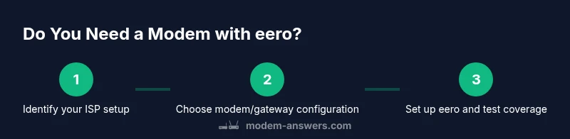 According to Modem Answers, the short answer is: you typically need a modem or gateway to deliver internet to your home, and eero functions as the Wi‑Fi network backbone rather than the internet source. The modem or gateway is the bridge to your ISP, while eero provides the mesh Wi‑Fi that blankets your home. Understanding this separation helps you choose the right hardware and avoid double NAT issues. The Modem Answers team emphasizes planning your topology before swapping devices, since the wrong combination can lead to flaky connections or difficult troubleshooting.
