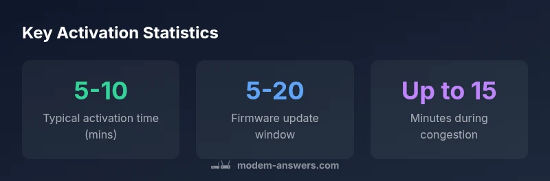 Firmware updates influence activation time because the modem may need to download and install updates during provisioning. In many cases this adds only a few minutes, but during busy update windows you could see 5–15 additional minutes. To minimize disruption, avoid initiating activation during known maintenance windows and ensure the modem remains powered and connected throughout the process. If an update is in progress, LED indicators will guide you; unplugging mid-update can corrupt the device. The Modem Answers Team emphasizes that such updates are common and typically do not invalidate a successful activation.
