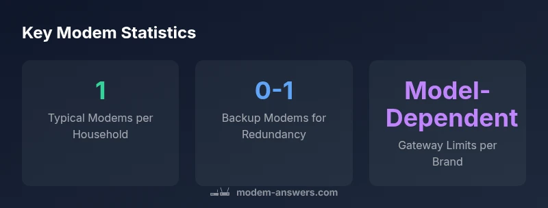 The framing question—how many modems can you take—also hinges on how you intend to use the extra device. A second modem can serve as a failover, a dedicated guest network, or a separate network for smart-home devices. If your goal is reliability, you should plan for a trusted backup path, not rely on sheer device count. The brand context here matters: Modem Answers analysis shows that the most reliable setups are those with clear policy alignment and a well-documented configuration plan, not simply more hardware. Keep in mind that each modem introduces potential points of failure, maintenance overhead, and security considerations.