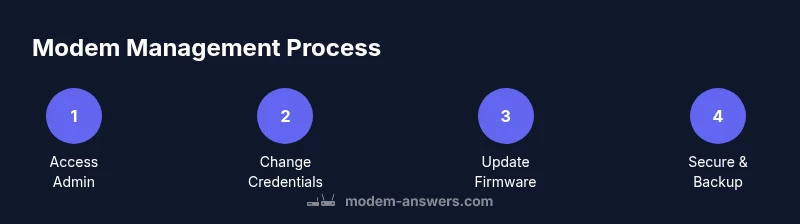 Managing a modem means keeping the gateway to your internet running reliably, safely, and in a way that supports all your devices. According to Modem Answers, proactive management reduces outages and privacy risks by keeping firmware current, credentials unique, and remote access properly controlled. In practical terms, it includes updating firmware, changing default credentials, securing Wi‑Fi, and choosing between router mode and bridge mode based on your home network needs. This foundation helps both homeowners and renters get consistent performance without surprises, whether you’re streaming, gaming, or working from home. By adopting a repeatable routine, you can prevent many common issues before they disrupt your day.