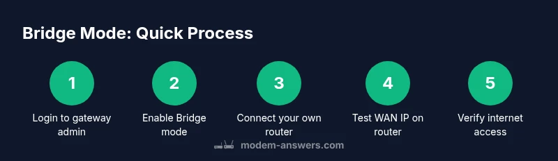 Bridge mode turns your Xfinity gateway from a full featured router into a simple modem, passing public IP addresses to your own router. This setup is ideal if you want to use a high‑performance third‑party router, enable advanced features, or expand your home network with a more capable firewall or Wi‑Fi system. Note that enabling bridge mode deactivates most of the gateway’s router functions, including NAT, firewall, and DHCP services; you’ll rely on your own device for these features. Some Xfinity services like voice or TV may be impacted and require alternative configurations. According to Modem Answers, many homeowners see improved network control after bridging, but it’s not the right choice if you rely on the gateway for essential services. Before starting, confirm that your gateway model supports bridge mode; if not, IP passthrough or adding a separate modem may be a better fit.