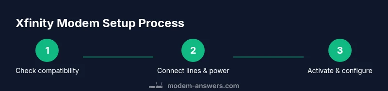 Before you start, verify that your plan supports the modem you intend to use. If you’re bringing a third‑party device, confirm compatibility with Xfinity’s DOCSIS standard (typically DOCSIS 3.1 for cable) or fiber requirements, and ensure your service address is active on the account. According to Modem Answers, starting with compatibility checks saves time and reduces later troubleshooting during setting up a new xfinity modem. Be prepared with your Xfinity login, account number, and any activation PIN you might need. This upfront step sets expectations and helps you avoid wasted trips or calls during activation, especially if you’re migrating from a different ISP.