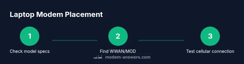 To answer 'where is modem in laptop', most modern machines hide the modem inside a built-in WWAN module or rely on an external USB modem. Start by checking Device Manager for a Mobile BroadBand or WWAN entry (Windows) or Network preferences (macOS). If your model lacks a built-in modem, you’ll use a USB modem or your phone as a hotspot.