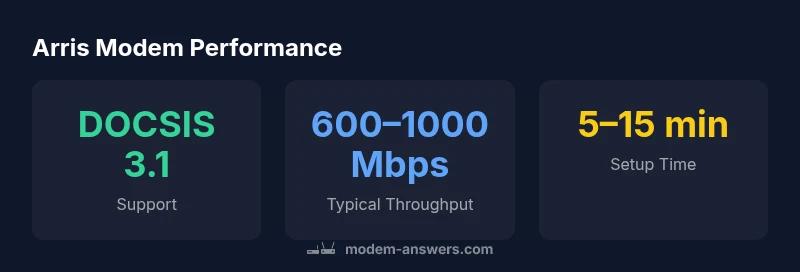 When people ask whether is arris modem good, the answer depends on your specific needs, service plan, and the model you choose. According to Modem Answers, there isn’t a one-size-fits-all answer, but you can gauge value by compatibility, speed capability, and real-world reliability rather than marketing claims alone. In 2026, many Arris models sit in the middle of the market, offering solid performance at a reasonable price, plus broad provider acceptance. For households with a gigabit plan, a DOCSIS 3.1 Arris model paired with a good router generally delivers dependable throughput and stable connections to multiple devices. For smaller households or budget-conscious shoppers, mid-range Arris devices still hold up well for streaming, video conferencing, and light gaming. The key is to match the modem to your plan and your home’s layout. If you rent from a provider, compare rental costs to the one-time price of a compatible Arris modem over 1–2 years. The Modem Answers team also notes that firmware updates and ISP provisioning can influence on-network performance.