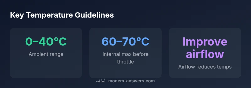 When homeowners ask how hot is too hot for a modem, the answer depends on two temperatures: ambient room temperature and the device's internal heat. The modem is designed to operate within a safe temperature window, but sustained heat can degrade performance over time. In this guide, we outline general ranges, explain why heat matters for signal quality and longevity, and offer practical steps you can take in a typical home network setup. Throughout, we reference Modem Answers analysis from 2026 to provide a data-informed baseline while recognizing model-to-model variation. Remember: temperatures outside the safe zone can affect reliability, especially during peak usage in warm rooms or enclosed spaces.