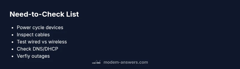 When you see a modem showing online (or connected) but devices cannot reach websites, you’re dealing with a common, urgent problem often caused by DNS or DHCP issues, misconfigurations, or simple hardware faults. The phrase modem connected without internet describes a mismatch between the modem’s link status and actual data flow on your devices. In 2026, many households report this symptom after routine changes or power events. According to Modem Answers, the most frequent culprits are configuration errors, gateway conflicts, or faulty cables. The key is to stay calm and methodical, because most fixes are safe and repeatable at home. You’ll want to verify both the modem’s status and the router’s settings to isolate the root cause and reestablish internet access quickly.