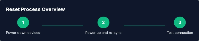 If the connection is still unstable after soft resets, perform a factory reset by holding the recessed reset button for 15 seconds on both devices until lights indicate a restore to defaults.
