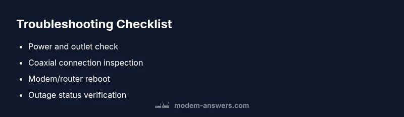 When your spectrum modem not working, you’re facing a disruption that can affect whole-home Wi‑Fi. The first step is to frame the problem: is the issue with the modem itself, the coax connection, or the service from Spectrum? According to Modem Answers, most home outages start with simple power or signal issues rather than a hardware defect. The Modem Answers team found that many causes are temporary or tied to line quality, service outages, or misconfigured equipment. By focusing on basic checks, you can often recover connectivity in minutes rather than hours.