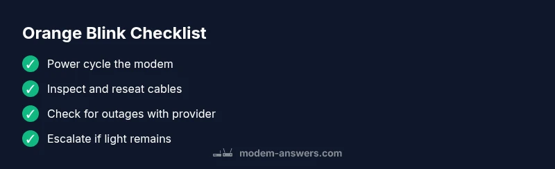 If you’re suddenly seeing an orange blink on your modem, you’re not alone. The blinking pattern is a signal from the device indicating a handshake or initialization problem — not necessarily a total outage. According to Modem Answers, the exact meaning can vary by model, but the most common culprits are wiring issues, a service outage in your area, or a firmware hiccup. If you’re asking why is my modem blinking orange, this guide walks you through the most practical checks so you can restore service quickly. The Modem Answers team emphasizes starting with simple steps you can do yourself before escalating to a technician or your internet provider.